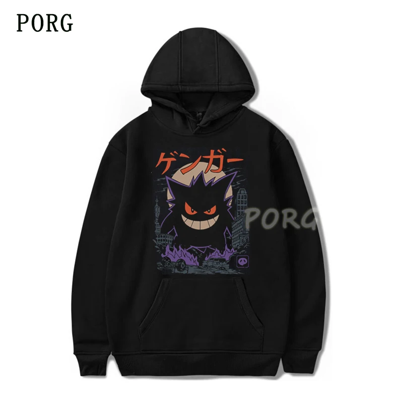 Gengar Kaiju японский стиль Покемон мужские толстовки хлопок с длинным рукавом o-образным вырезом Топы Мода 2019 негабаритных Sudadera Hombre цельный