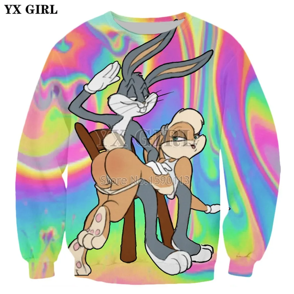 Брендовая одежда YX для девочек, толстовка с капюшоном для мужчин и женщин, забавный рисунок багов и зайчиков, 3d Толстовка с галстуком-краской, повседневные пуловеры, Прямая поставка