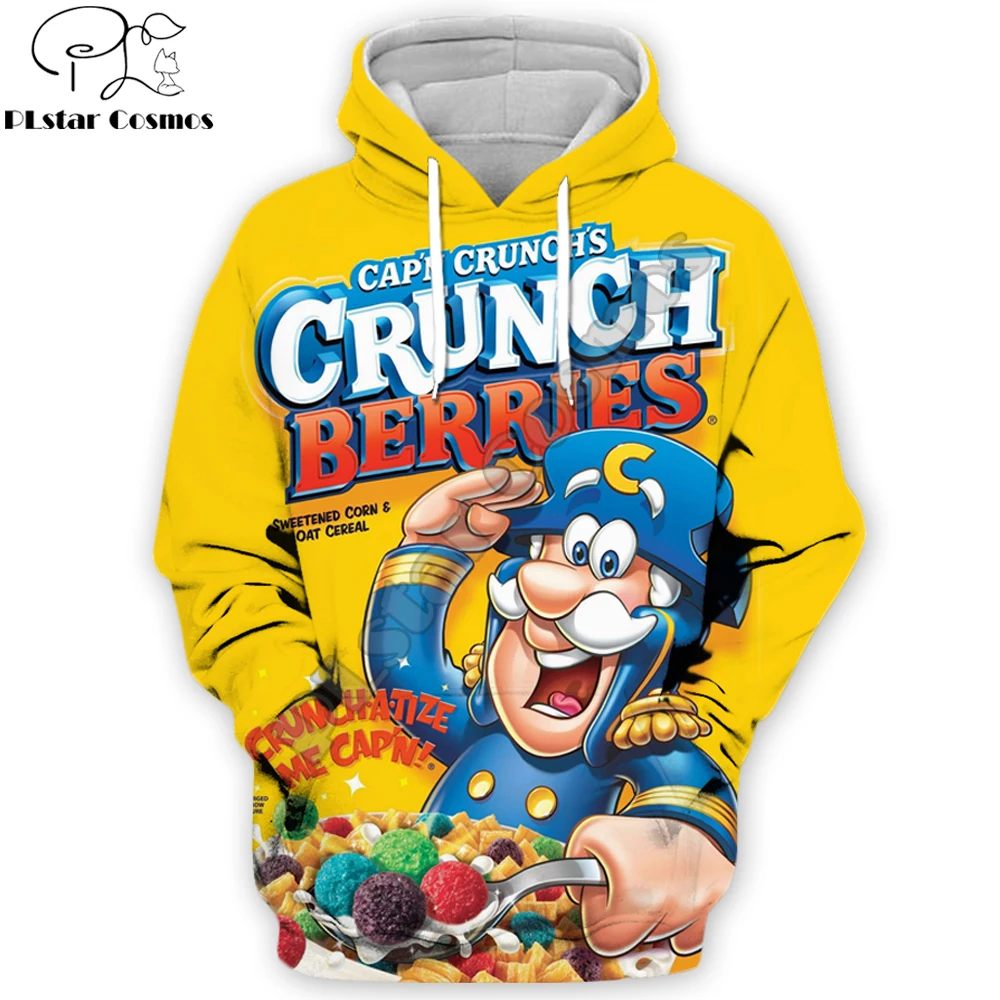 2019 Модные мужские толстовки с татуировками 3D печатная еда Crunch ягоды Футболка-толстовка с капюшоном/куртка на молнии унисекс Повседневная Уличная одежда
