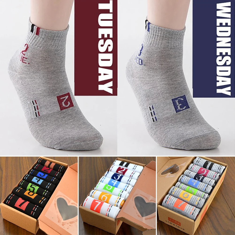 Популярные однотонные короткие носки с цифрами 7 дней в неделю, летние дышащие носки для мужчин, повседневные хлопковые носки