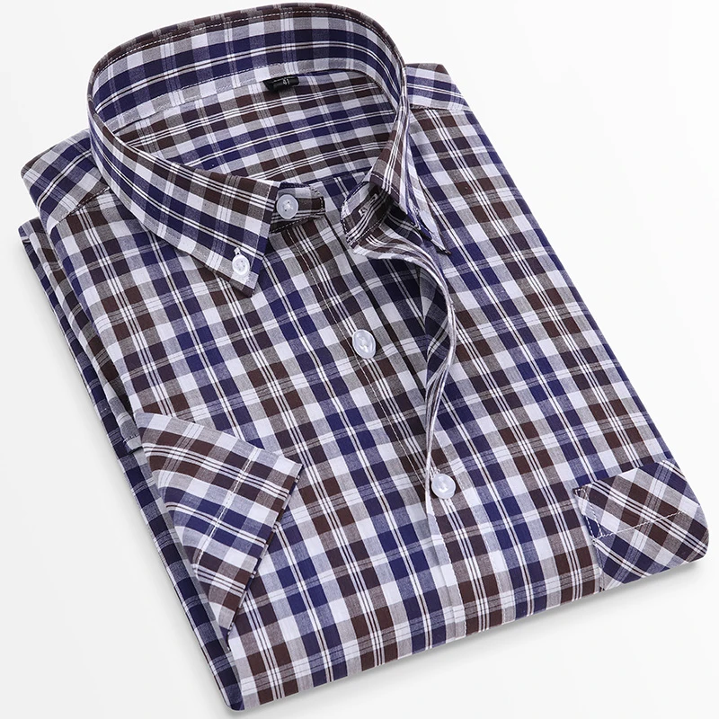 Мужская клетчатая рубашка, летняя, дышащая, с коротким рукавом, из 100% хлопка, обтягивающая, повседневная, много цветов