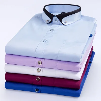 Мода весна осень мужские рубашки с длинным рукавом сплошной цвет легкий уход противосминаемый мужские повседневные рубашки M-3XL FS99