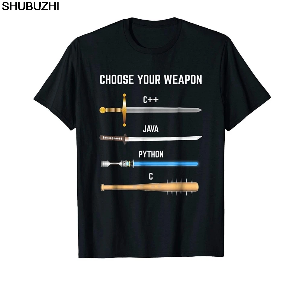Летний хлопковый короткий рукав плюс размер Забавный программист выберите свое оружие футболка подарок для Devs футболка