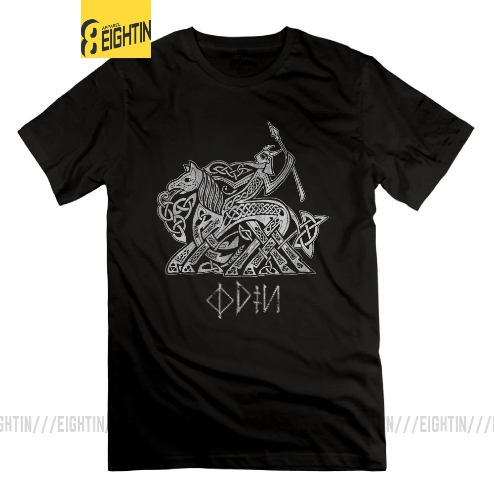 Eightin Викинг Один для верховой езды в Valhalla на Sleipnir футболки 100% хлопок Винтаж короткий рукав футболки круглый воротник футболки для Для мужчин