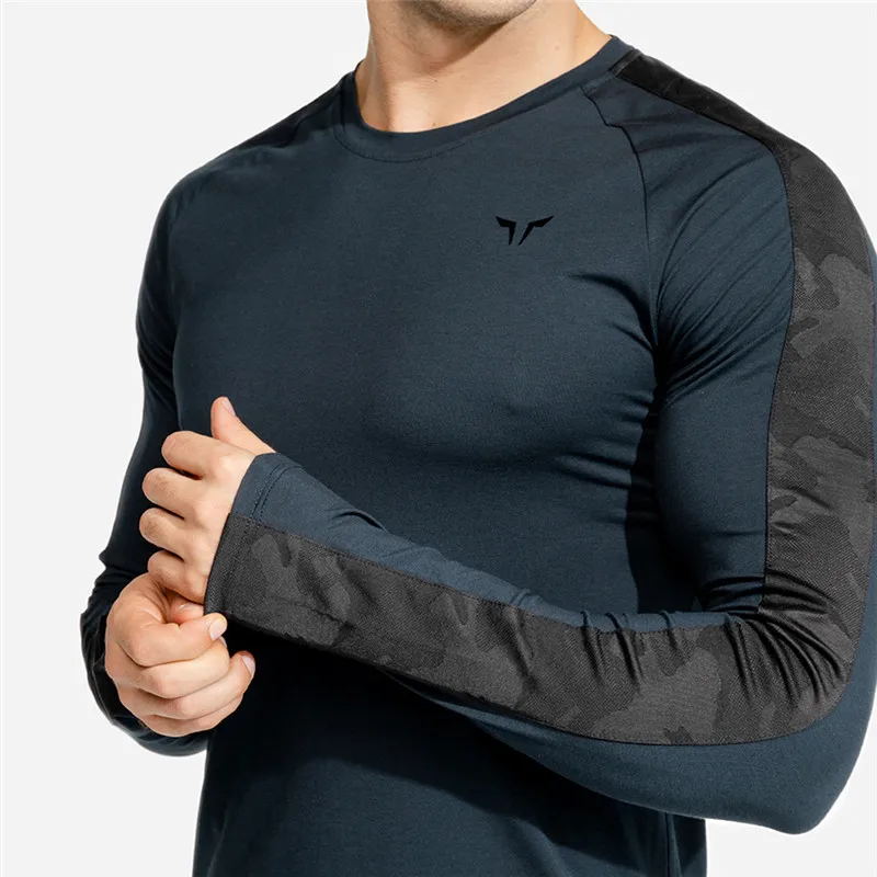 2020 мужские беговые камуфляжные Лоскутные футболки, быстросохнущие Компрессионные спортивные футболки, футболки для фитнеса, тренажерного зала, мужская спортивная одежда