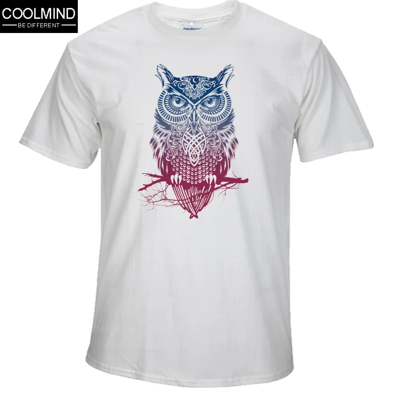 COOLMIND OW0112A хлопок короткий рукав Сова Мужская футболка с принтом Прохладный Смешные мужские футболки топы мужские футболки повседневные муж...