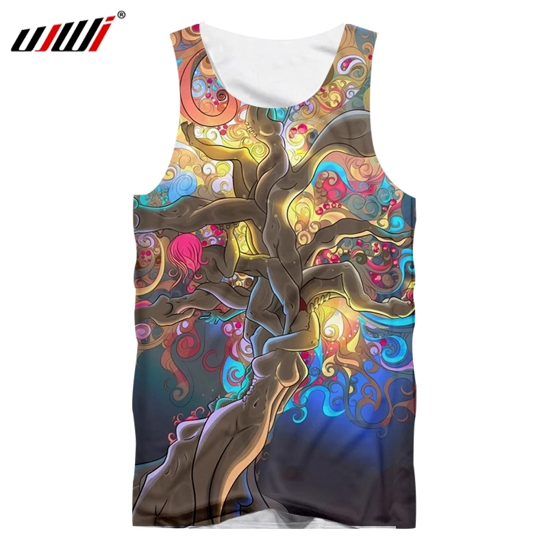 UJWI 2019 Прямая поставка с фабрики оригинальный образец дизайн 3D красочные дерево печати Топ широкий жилет оптовая продажа