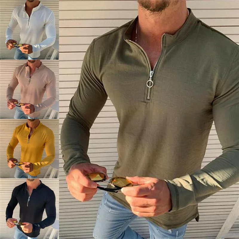 Мужские модные однотонные футболки с длинными рукавами и круглым вырезом 2019 Новые мужские повседневные облегающие футболки с Хэнли свитшо...