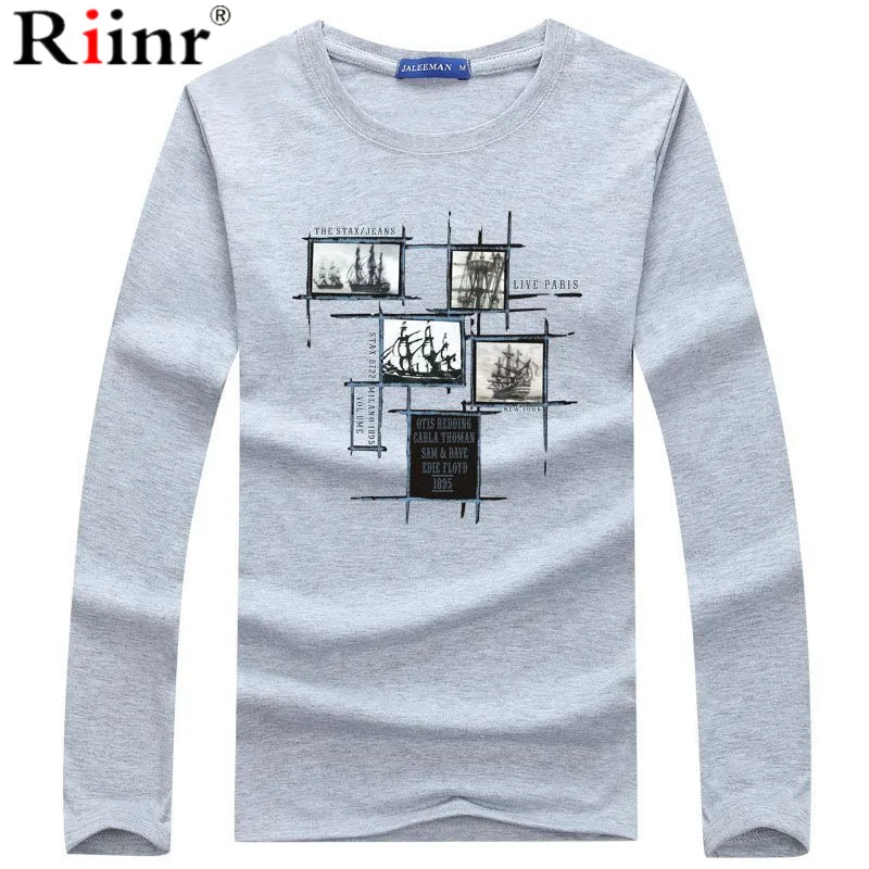 Riinr 2020, новинка, хит продаж, семь букв, принт, длинный рукав, футболка, Повседневная, мужская одежда большого размера, Мужская футболка с круглым вырезом, хлопок, 5XL