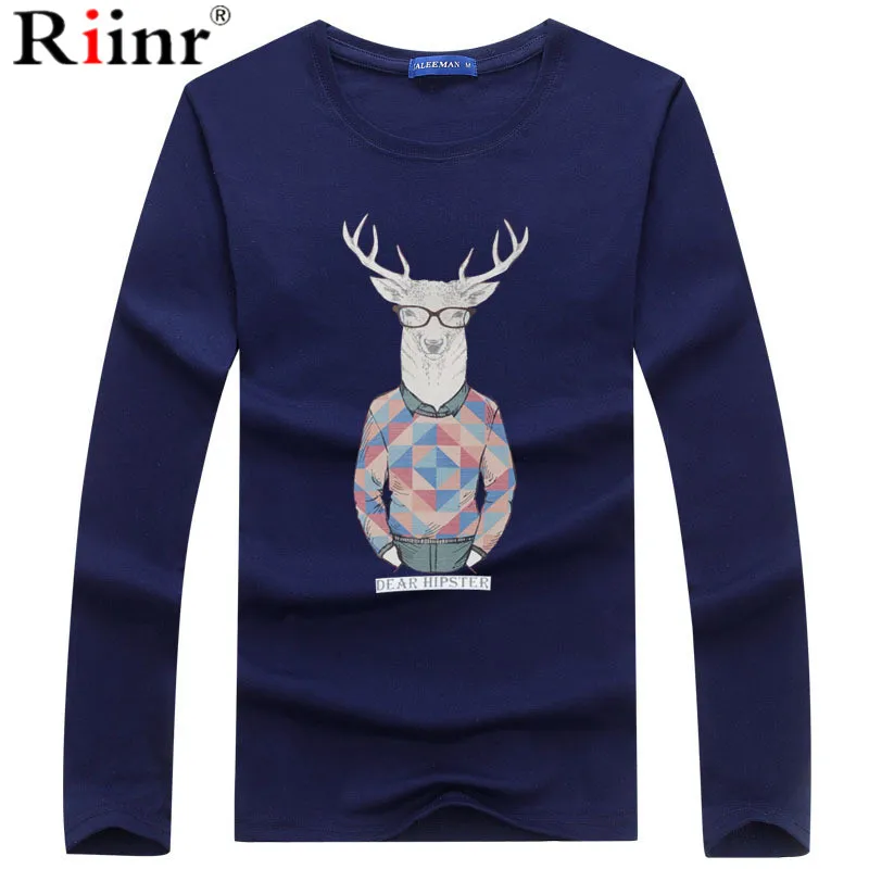 Riinr 2020 новая весенняя креативная Футболка с принтом оленя и длинным рукавом, повседневная мужская одежда большого размера, Мужская футболка с круглым вырезом из хлопка 5XL