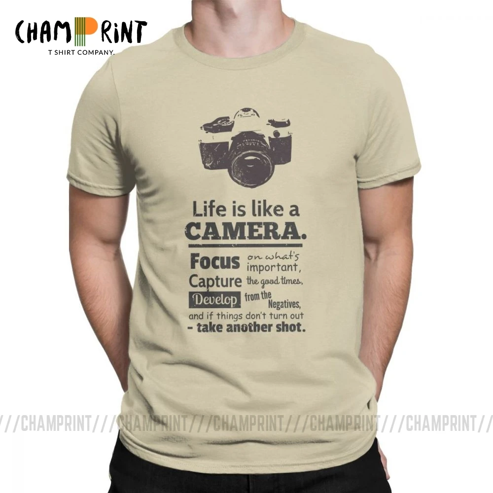 Винтажная шикарная жизнь как камера футболки для Мужская хлопковая футболка фотограф с коротким рукавом футболки Плюс Размер Одежда