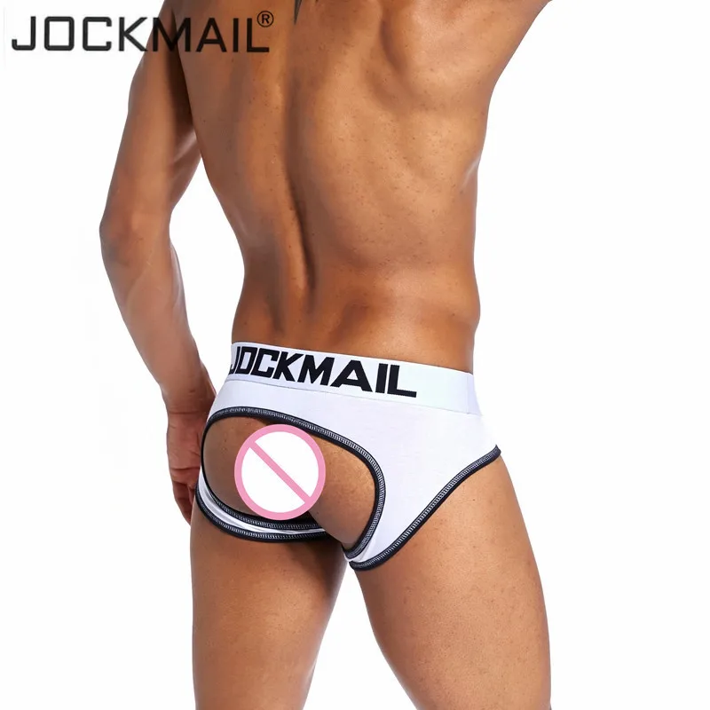 JOCKMAIL Марка сексуальное нижнее белье мужчины Открыть спинки промежность мужские трусы танга hombre Сисси короткие Гей Нижнее белье скольжения ...