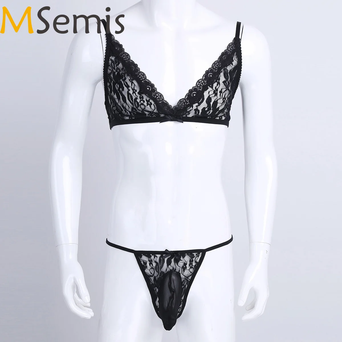 MSemis сексуальное мужское нижнее белье мужские кружевные прозрачные регулируемые ремни ночное белье комплект одежды для сна мужские s бюстга...