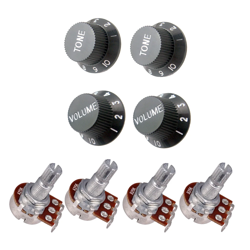 4 шт. потенциометр для гитары аудио Pots A25K B25K 18 мм Замена и 4 шт. гитары регулятор громкости тон ручки черный