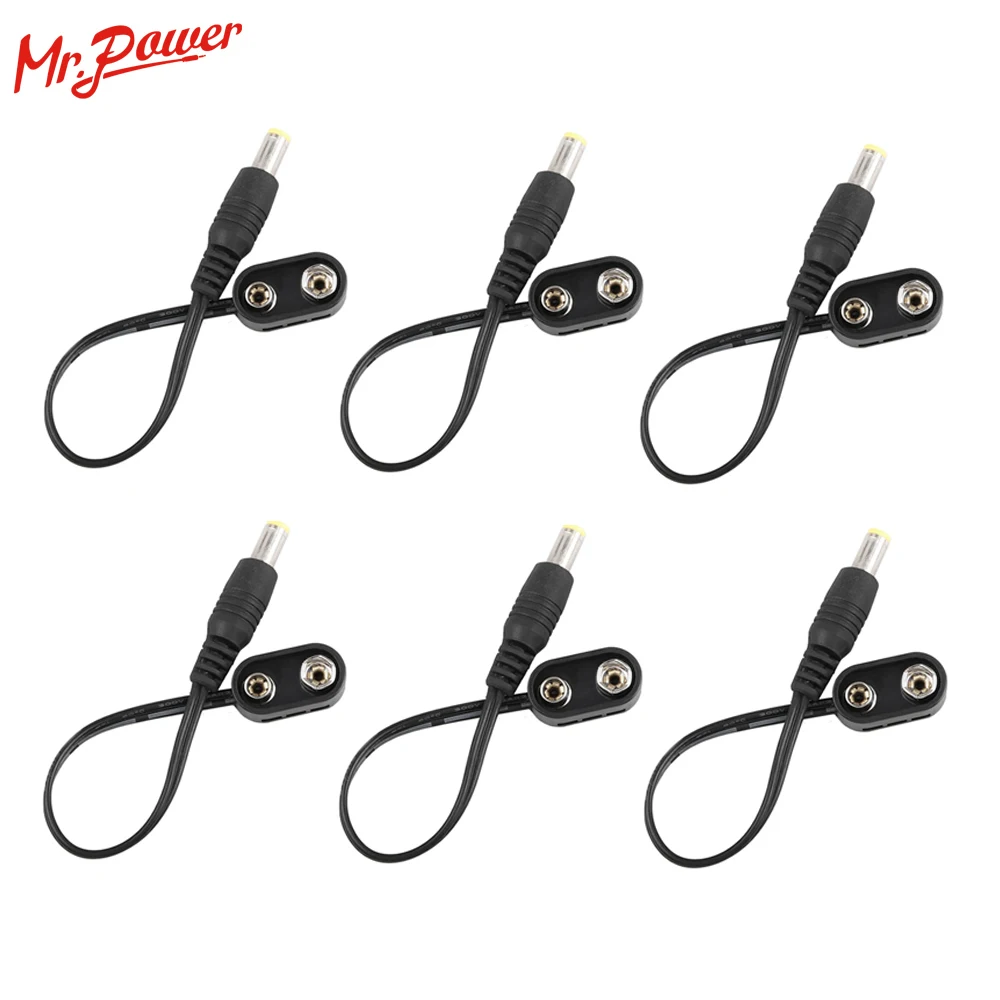 6 шт. зажимы-преобразователи для аккумуляторов 9 в кабель питания защелкивающийся разъем DC 2,1 5,5 мм разъем для гитары педаль эффектов батарея блок питания адаптер