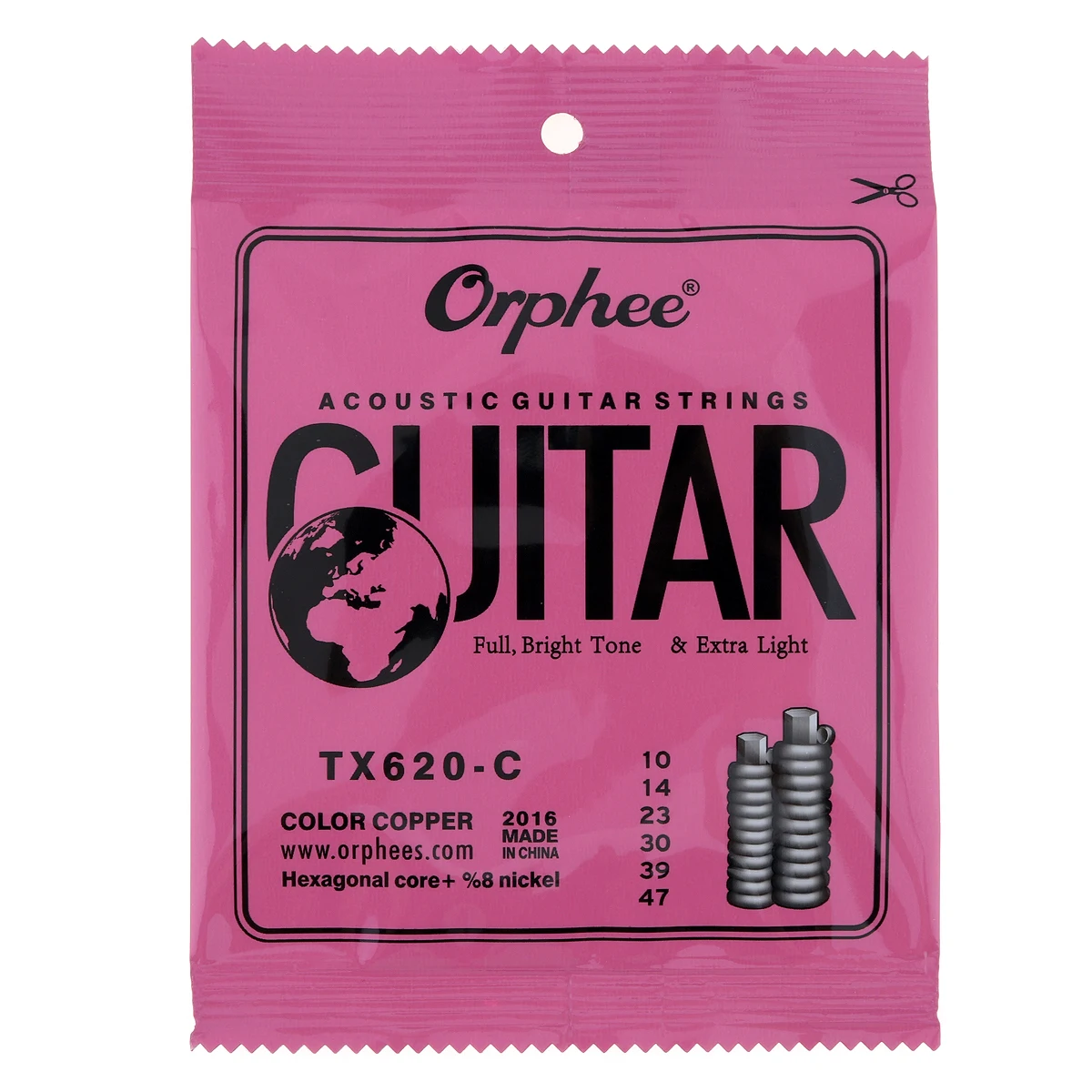 Orphee 6 шт./компл. акустической гитары многоцветные Медь строк с Полный яркий тон и дополнительный свет TX620-C