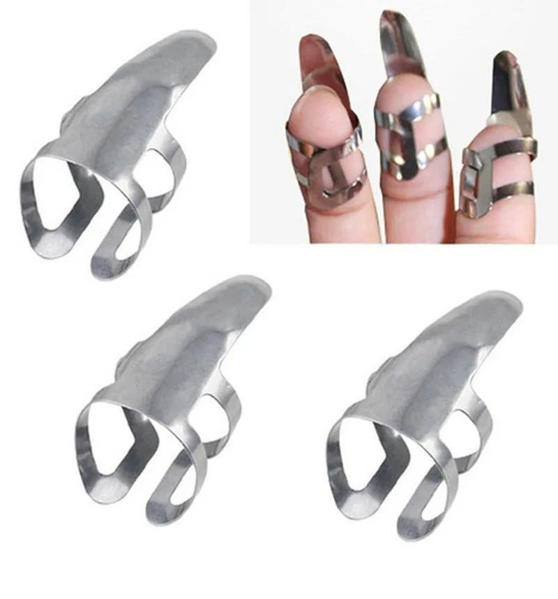 3 шт., нержавеющая сталь, 3 пальца, для маникюра, для гитары, медиаторы, набор, металлическая акустическая электрическая бас-гитара, аксессуар...