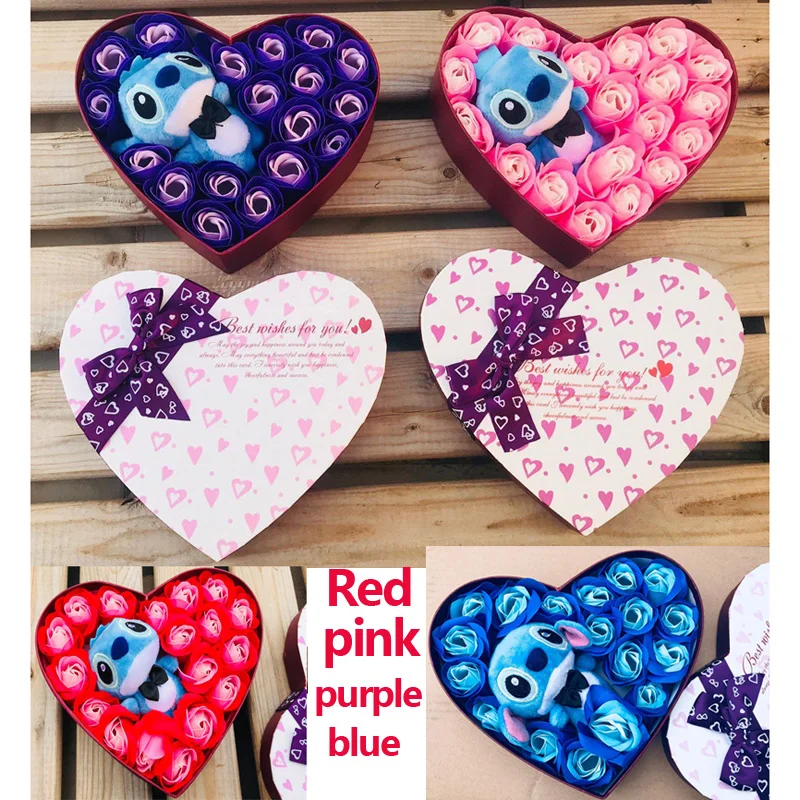 Искусственные цветы букет стежка букеты плюшевые игрушки мыло с цветком розы Лило игрушки с коробкой День Святого Валентина украшения для ...