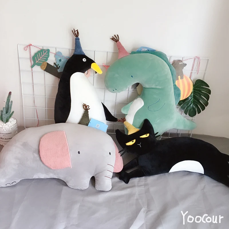 50/80 см с принтом милых животных детские плюшевые игрушки Мягкий КИТ динозавр кошка Пингвин слон диванные подушки диван, домашний декор, пода...