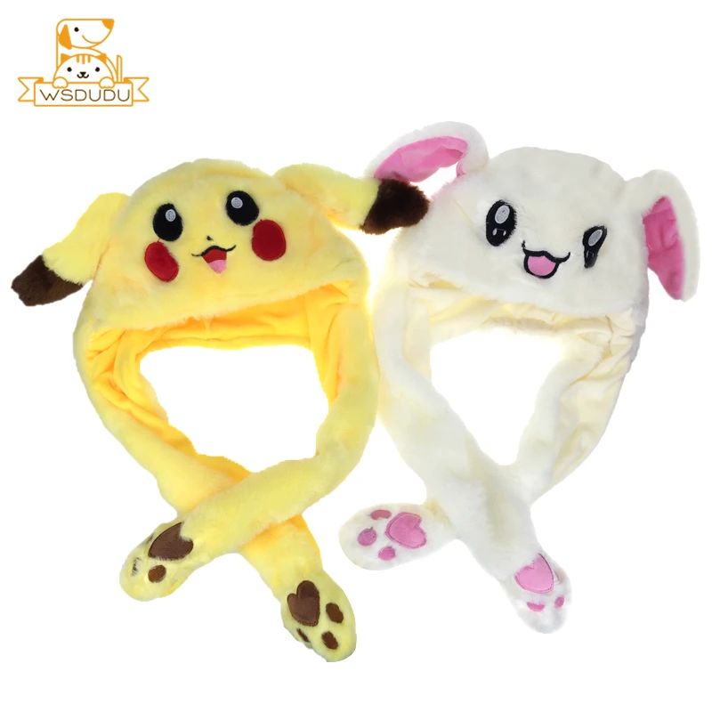 Животные движущиеся уши шапка кролик Кошка Хомяк собака Пикачу слон кукла движение мягкие игрушки мультфильм Kawaii Милая подушка безопаснос...