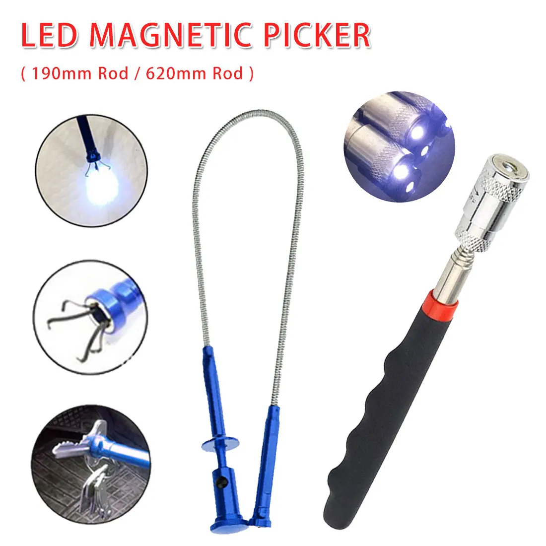 Гибкий Длинный инструмент для захвата мусора телескопический магнитный инструмент для пикапа со светодиодной подсветкой Магнитный Пикер 190 мм/620 мм