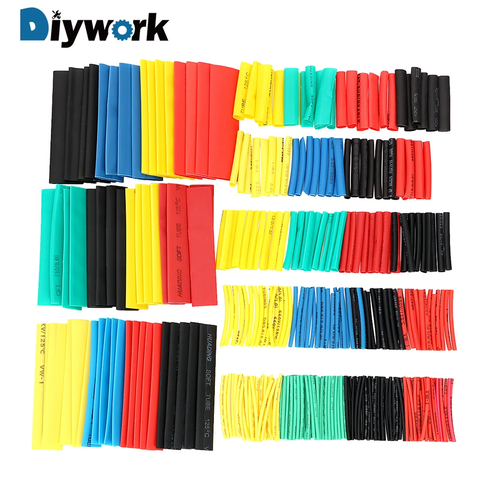 DIYWORK 328 шт. 8 Размеры трубки ассортимент Sleeving Обёрточная Бумага трубки Обёрточная бумага жильный кабель изолированные полиолефина 2:1 галоген...