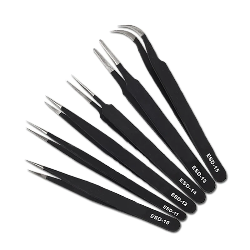 6 шт./компл. инструмент для пинцета от электростатического разряда 10-15 безопасный Анти-статический Нержавеющая сталь пайки инструменты для пинцета набор для паяльной станции
