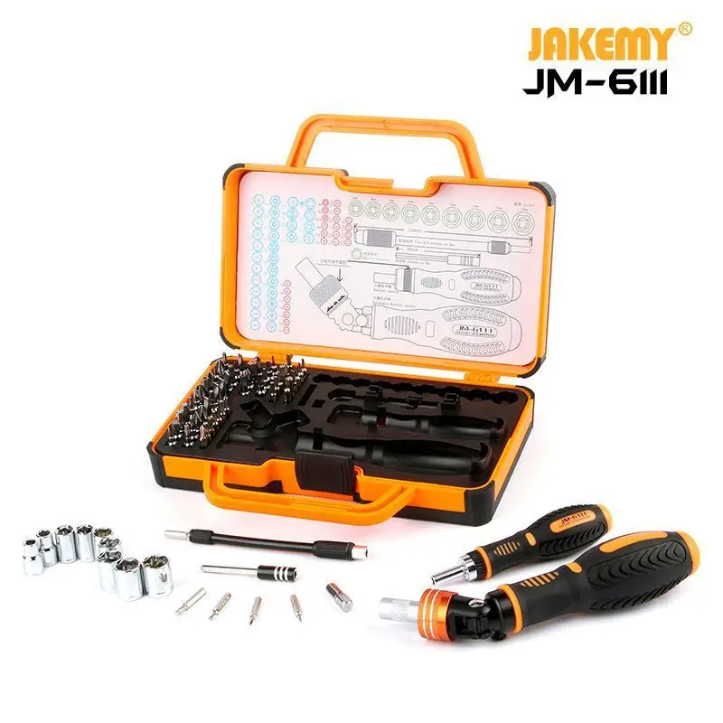 JAKEMY JM-6111 69 в 1 DIY набор ручных инструментов 180 градусов трещотка отвертка с хромированными ванадиевыми биты домашние инструменты