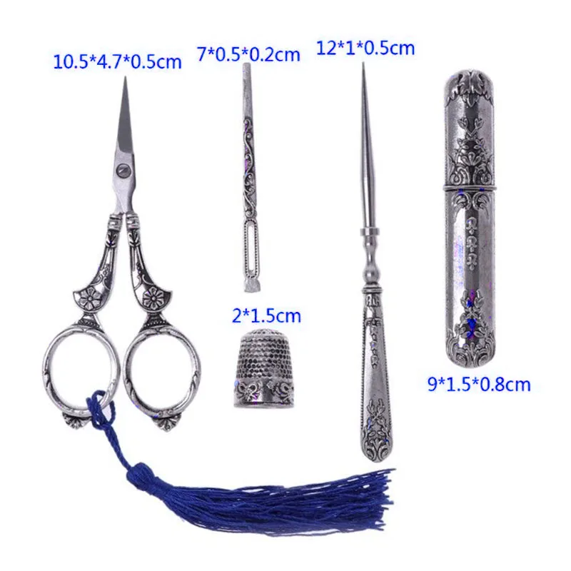 Портновские ножницы набор винтажный инструмент для вышивки сплав Awl Threader Thimble Needle Case Kit AI88