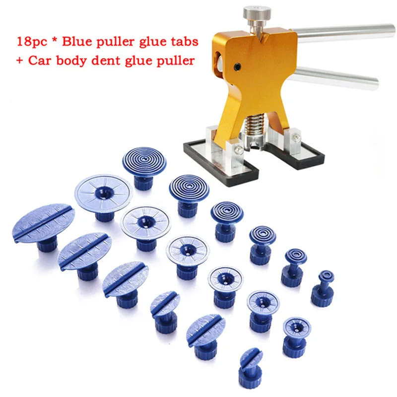 Автомобильный инструмент для удаления вмятин, набор инструментов, автомобильный инструмент, безболезненный инструмент для ремонта вмятин, Denting Puller Lifter + 18 тапочек, инструмент для удаления вмятин, ремонт