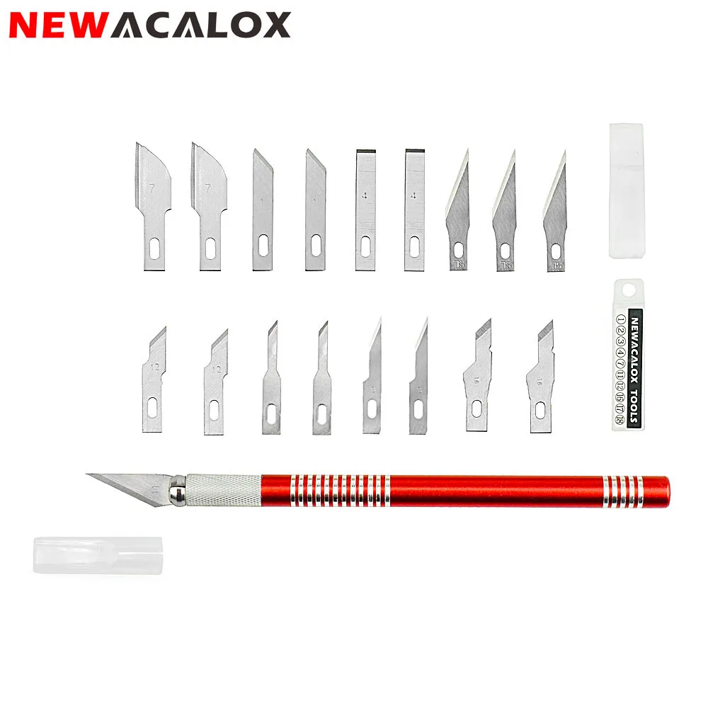 NEWACALOX 19 шт. точность хобби ножи нержавеющая сталь лезвия для художественных промыслов DIY PCB ремонт кожа плёнки дерево Рабочая ручка