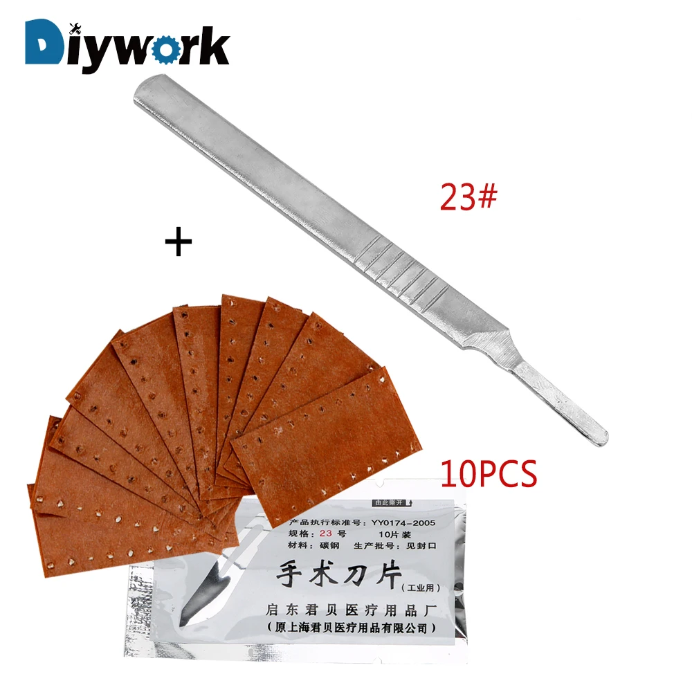 DIYWORK 10 шт. скальпель хирургические лезвия с шт. 1 ручка вырезка ножи нержавеющая сталь для печатной платы 23 #11 #