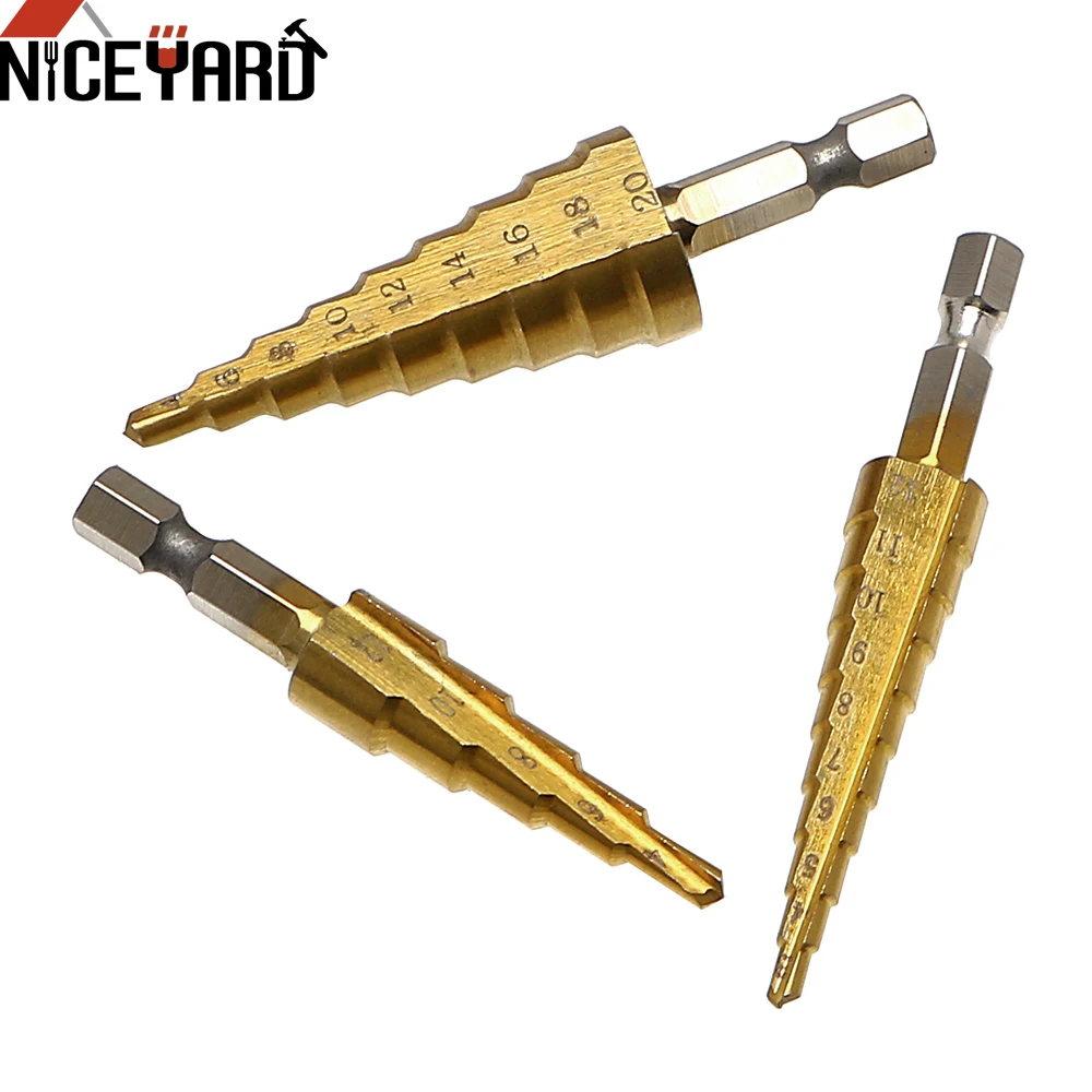 NICEYARD 3-12 мм 4-12 мм 4-20 мм практическое ступенчатое сверло высокоскоростное стальное Сверление дерева набор ручных инструментов титановое пок...