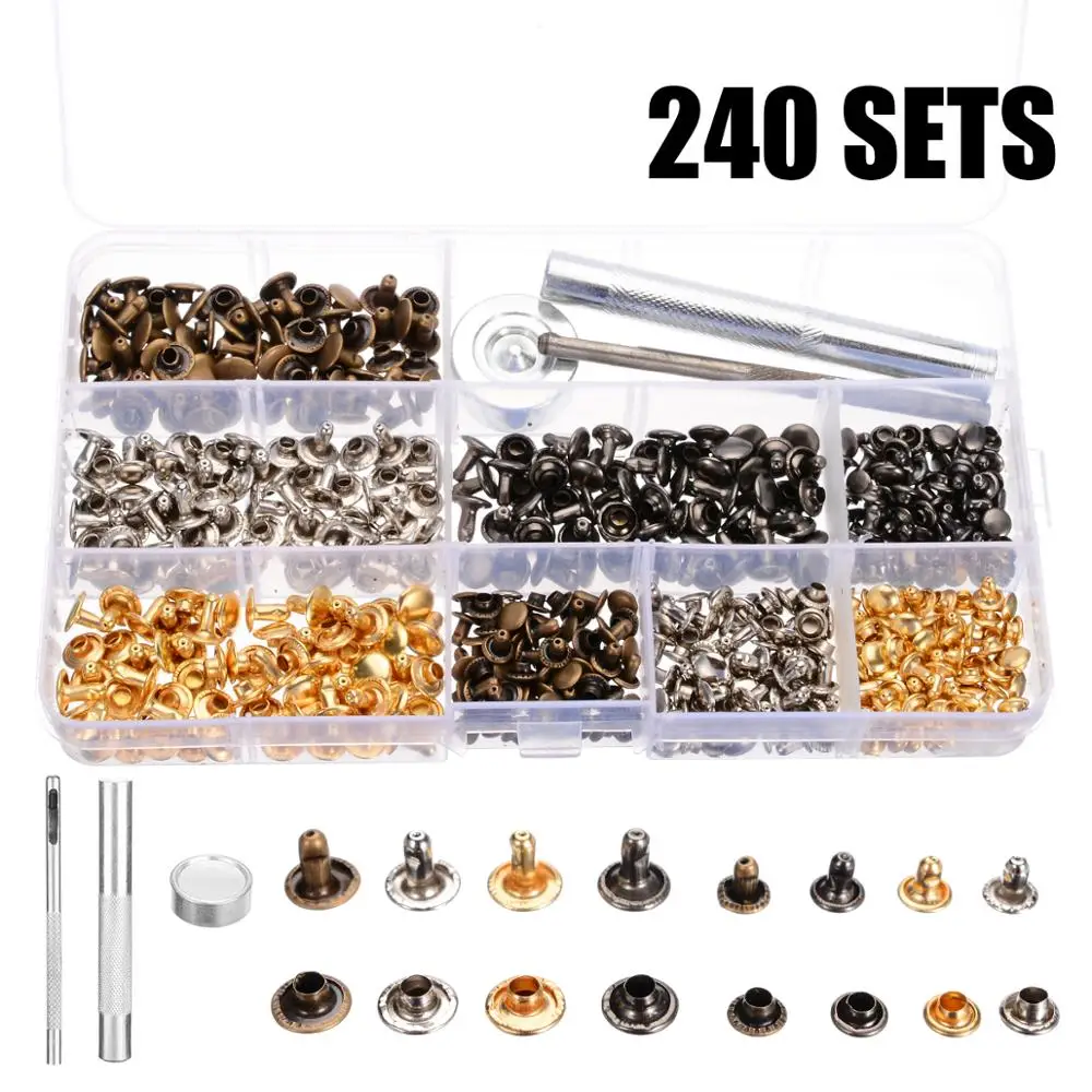 Медь Двусторонняя заклепки монтажный комплект 240 компл. Кожа ремесло заклепки с двумя головками трубчатые металлические шпильки крепежные ...
