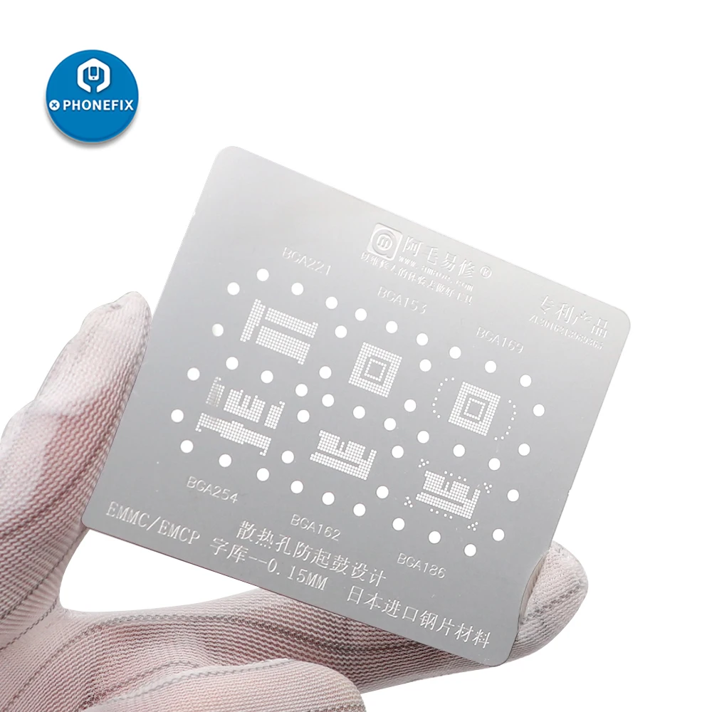 PHONEFIX 6 в 1 0,15 мм трафареты для исправления дефектов пайки BGA для памяти на носителе EMMC BGA221 153 169 254 162 186 прямого нагрева шаблон инструментов для ...