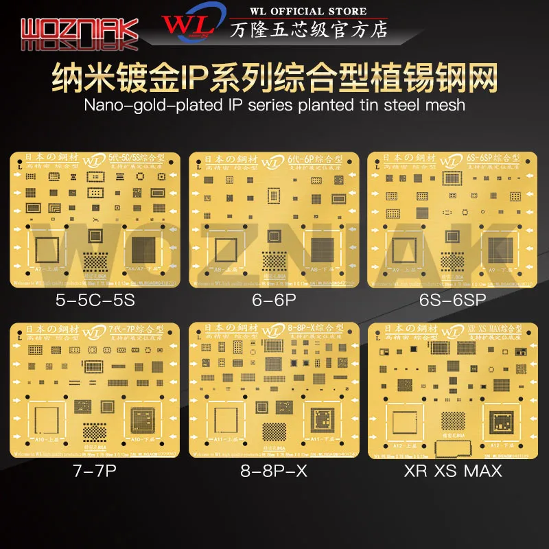 WL нано золотое покрытие полный BGA трафарет для IPHONE 5S 6G 6P 6S 6SP 7 7P 8 8P X XS XSMAX cpu IC шаблон для ремонта
