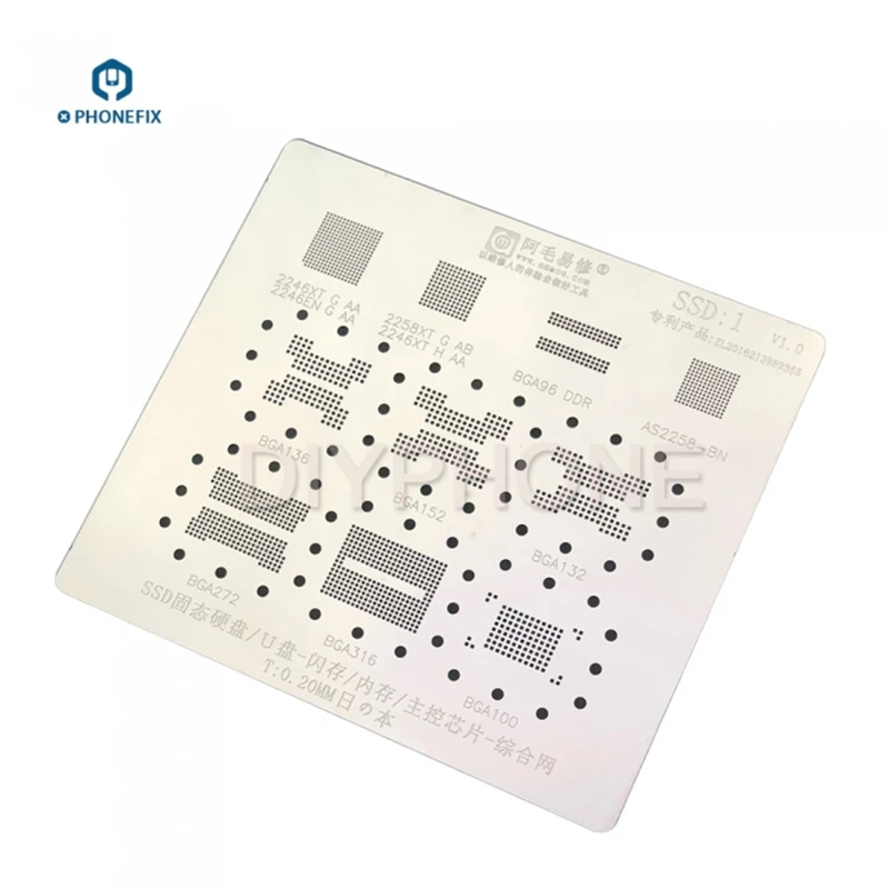 PHONEFIX AMAO 0,2 мм BGA шаблон реболлинга SSD DDR память BGA152 BGA132 BGA316 для ремонта телефонов u-диск NAND флэш нагревательная пластина