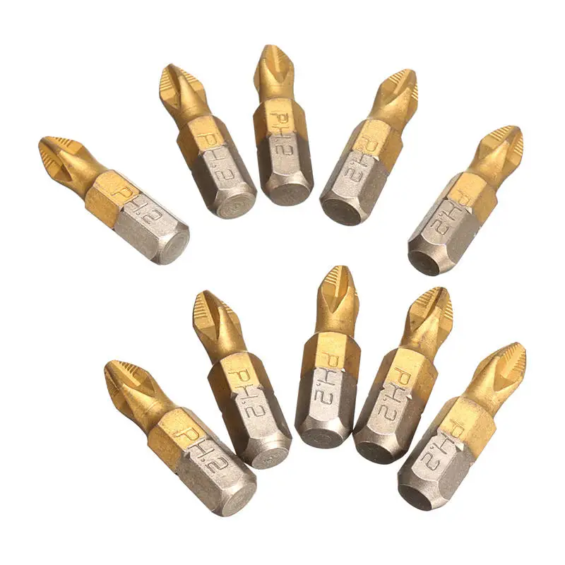 Drillpro 10 шт. 1/4 "PH2 Титан покрытием Магнитный Биты отвертки S2 высоколегированной Сталь удобный ручной инструмент набор