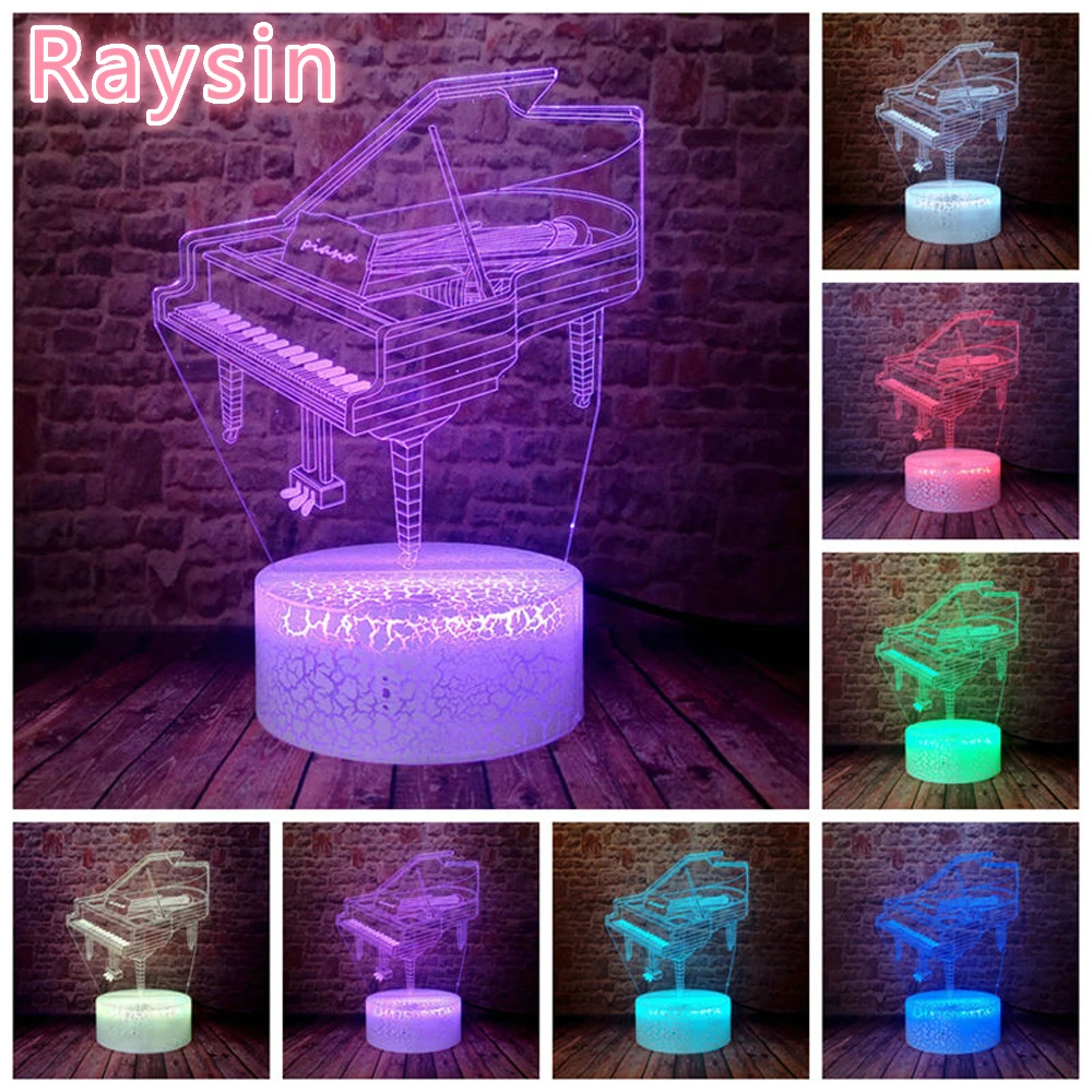 Креативная музыкальная рояль в форме 3D яркая светодиодная USB лампа для ночного настроения многоцветная 7 видов цветов Настольная лампа для детей, студентов, подарки на Рождество