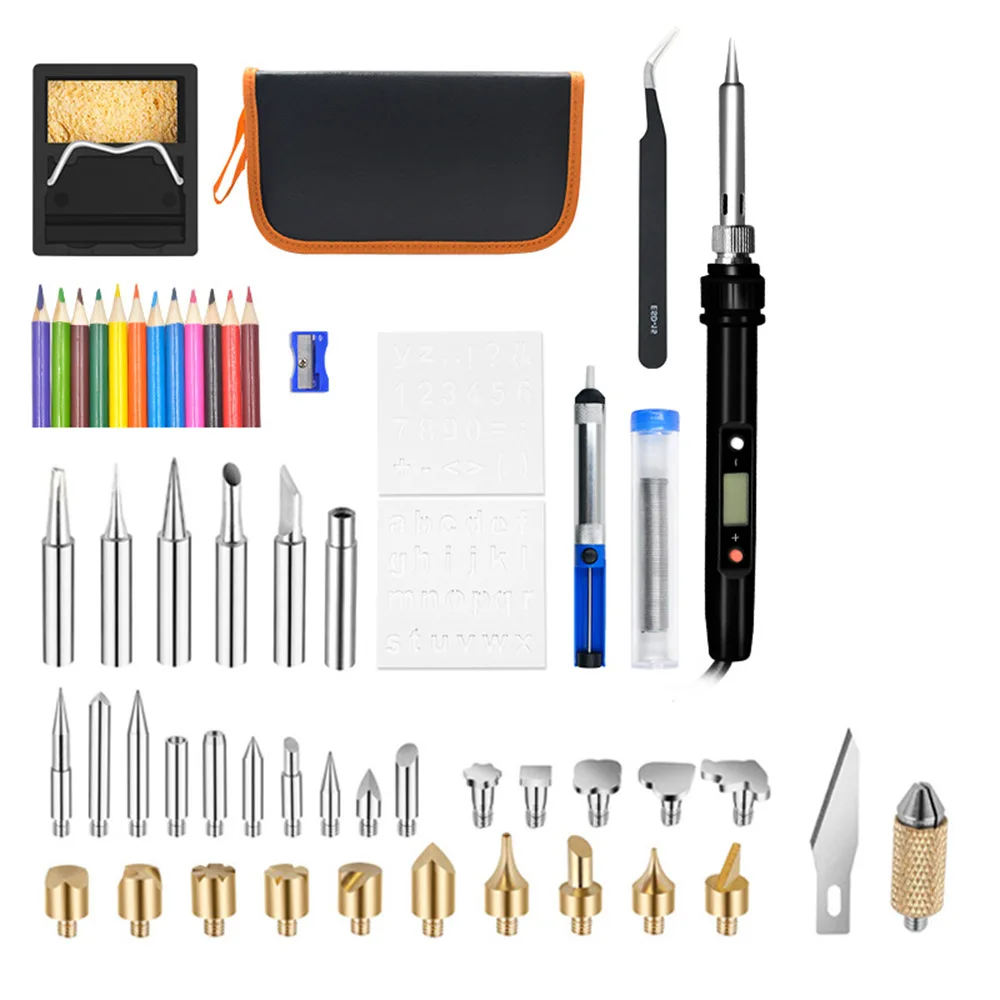 GEYOTAR 40 шт. Профессиональный инструмент для выжигания по дереву набор для выжигания 60 Вт паяльник с регулируемой температурой ручка для тисн...