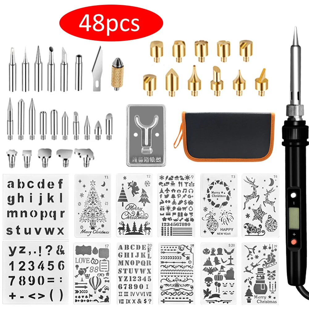 48 шт. резьба по пирографии набор ручек тиснение пайки советы сжигание дерева инструмент Ремесло Регулируемая температура паяльник ЕС вилка