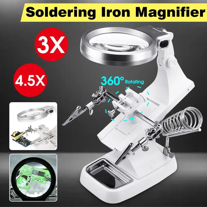 Вращающаяся паяльная станция, подставка для сварки, увеличительный зажим для стеклянных зажимов, 3 ручные Ручные лупы для ремонта пайки