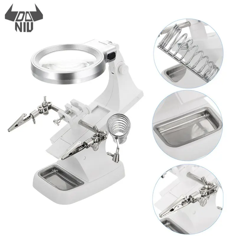 Danu Белый СВЕТОДИОДНЫЙ Фонарь ручной пайки увеличительное стекло w/3x/4.5x Len Лупа многофункциональная сварка с зажимом
