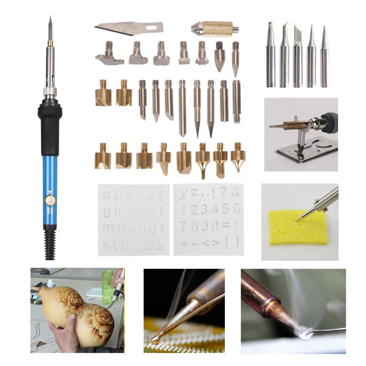 60 Вт регулируемый Электрический паяльник резьба пирография набор инструментов Дерево тиснение горящая паяльная ручка набор сварочных нак...