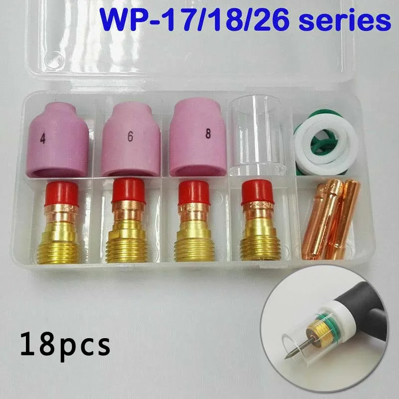 18 шт TIG Короткие газа объектив Керамика Насадка + тепловые чашки комплект WP17/18/26 2,4 мм 3/32 дюймов аксессуары для сварки и резки