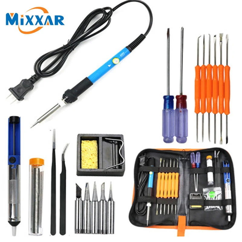 Челнока 60 W Регулируемый Температура Электрический паяльник Комплект 5 шт Портативный сварка ремонт инструмент, плоскогубцы отвертка и нож