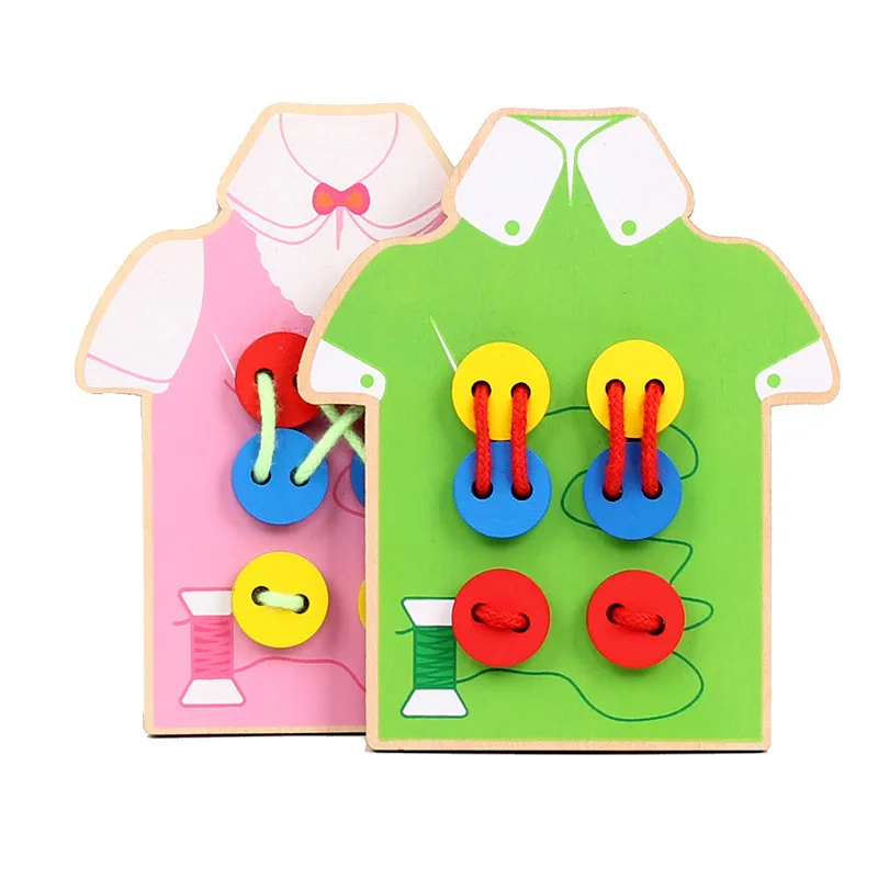 Монтессори DIY деревянные игрушки пришить на пуговицы деревянные познавательные руки Тренировки Мозга раннего творчества Развивающие игру...
