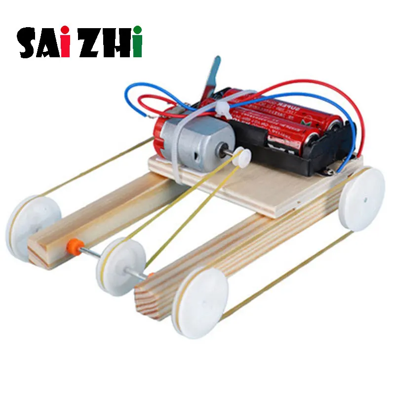 Saizhi Деревянный DIY Электрический шкив четыре колеса автомобиля физика Science комплект моделей конструктор детские развивающие игрушки SZ3246