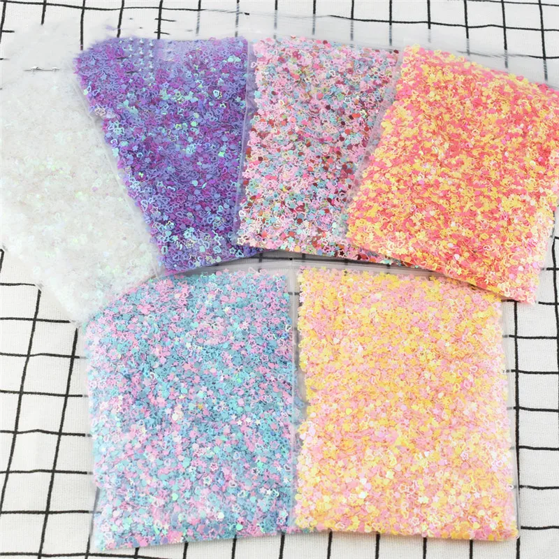 40 г/пакет красочные пятиконечные звезды полые блестки клейкие Аксессуары супер легкая глина DIY украшения для дизайна ногтей кристалл грязи ...