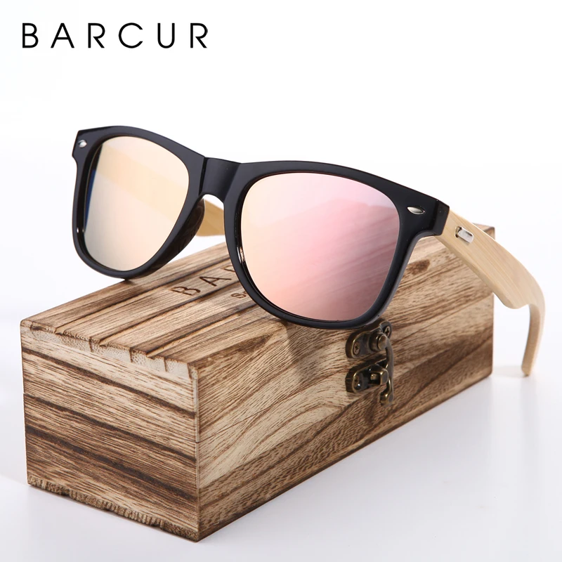 BARCUR 2019 розовый солнцезащитные очки, дерево бамбуковые женские солнцезащитные очки мода зеркало солнцезащитные очки для женщин для брендов...